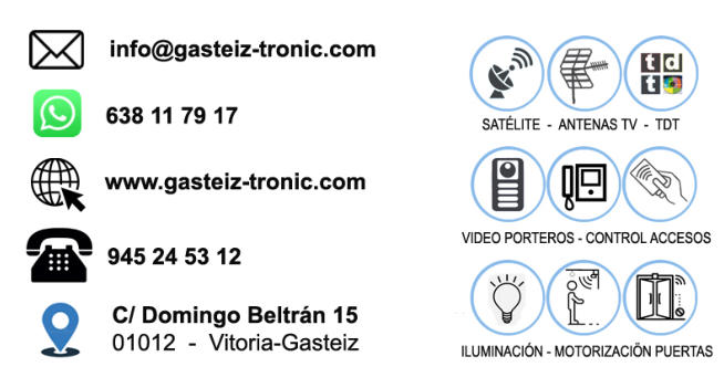 Gasteiz-Tronic Telecomunicaciones S.L.L. Tfno: 945 245312 WhatsApp 638 117917 Domingo Beltrán 15 Vitoria-Gasteiz